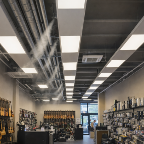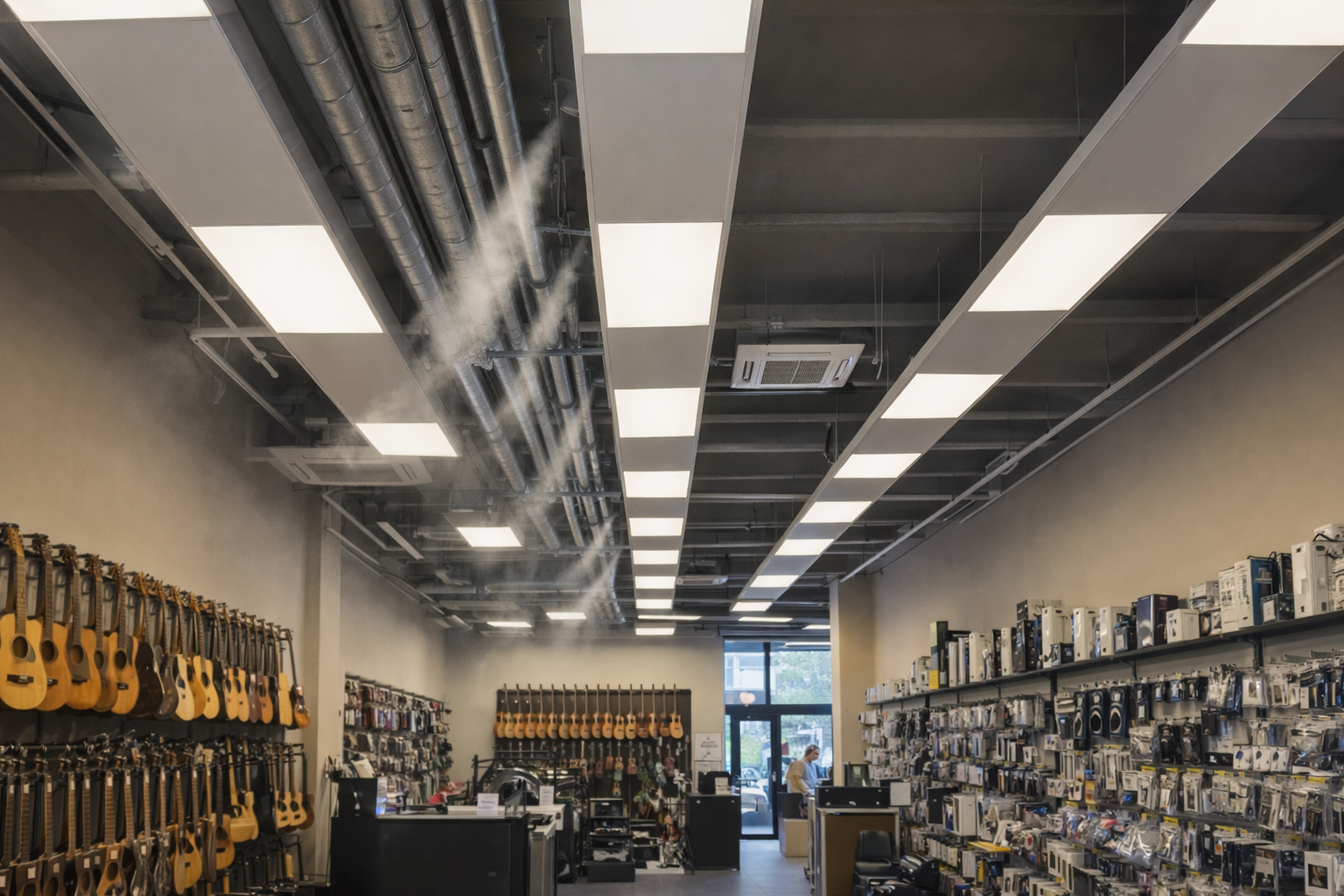 Salone eksponuojami ir parduodami muzikos instrumentai, pagaminti iš natūralaus medžio, kuris yra jautrus oro drėgmės svyravimams. Per sausas oras gali neigiamai paveikti instrumentų būklę, deformuoti medieną ar pabloginti jų skambesio savybes.