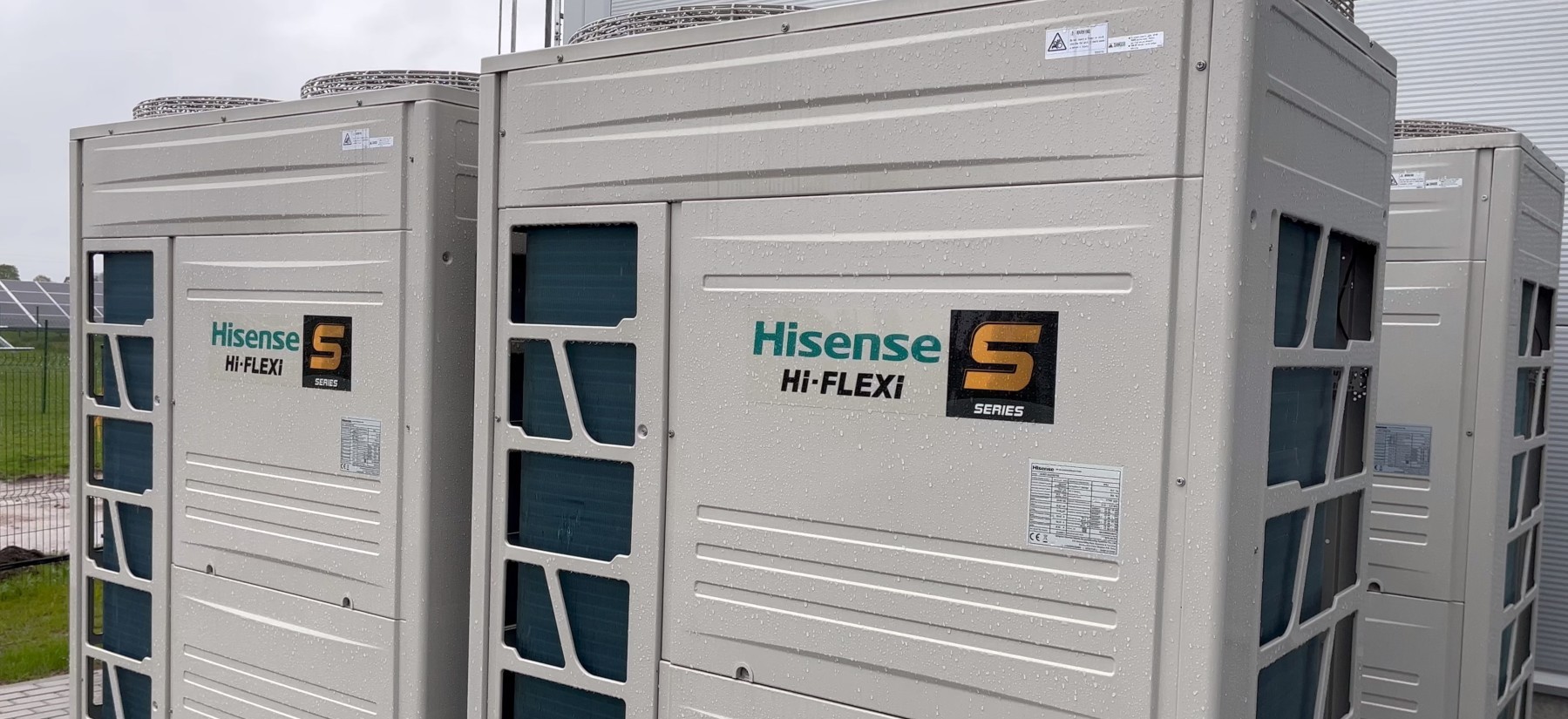 - Sumontuota Hisense VRF sistema (bendras galingumas ~626 kW), leidžianti efektyviai vėsinti ir šildyti skirtingas zonas pagal poreikį