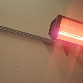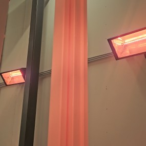 Įrengta infraraudonųjų spindulių šildymo sistema, kuri šilumą perduoda tiesiogiai paviršiams. Pirmoje patalpoje sumontuoti 6 šildytuvai su srauto reguliatoriumi, sistema suskirstyta į 3 valdomas zonas. Antroje patalpoje įrengti 6 vnt. WR2000 (2 kW) modelio šildytuvai su halogeniniu elementu, užtikrinantys greitą ir efektyvų šildymą.