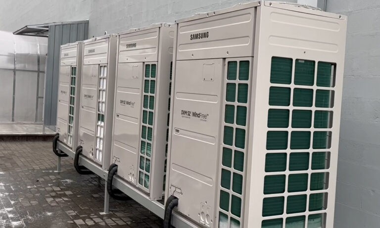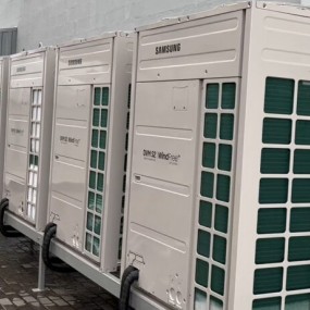- Vėsinimui naudojamas freoninis šilumokaitis su 4 Samsung VRF išoriniais blokais
