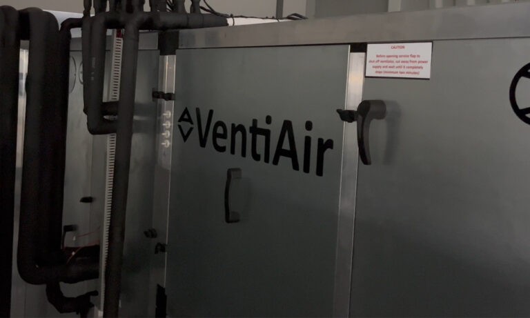 - Oro tiekimui įrengta VentiAir (45 000 m³/h) oro kamera su 442 kW vandeniniu šilumokaičiu ir 246 kW Samsung VRF vėsinimo sekcija