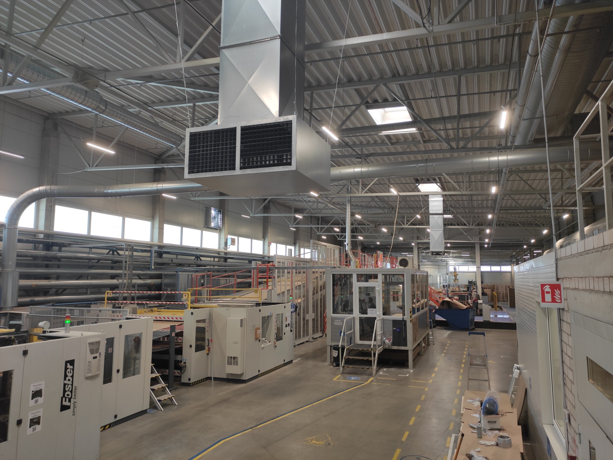 Sumažinta temperatūra darbo zonose, pagerinta oro kokybė ir užtikrintos komfortiškesnės darbo sąlygos gamybos procese.