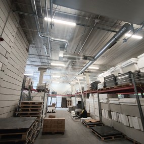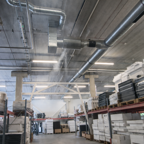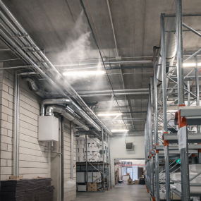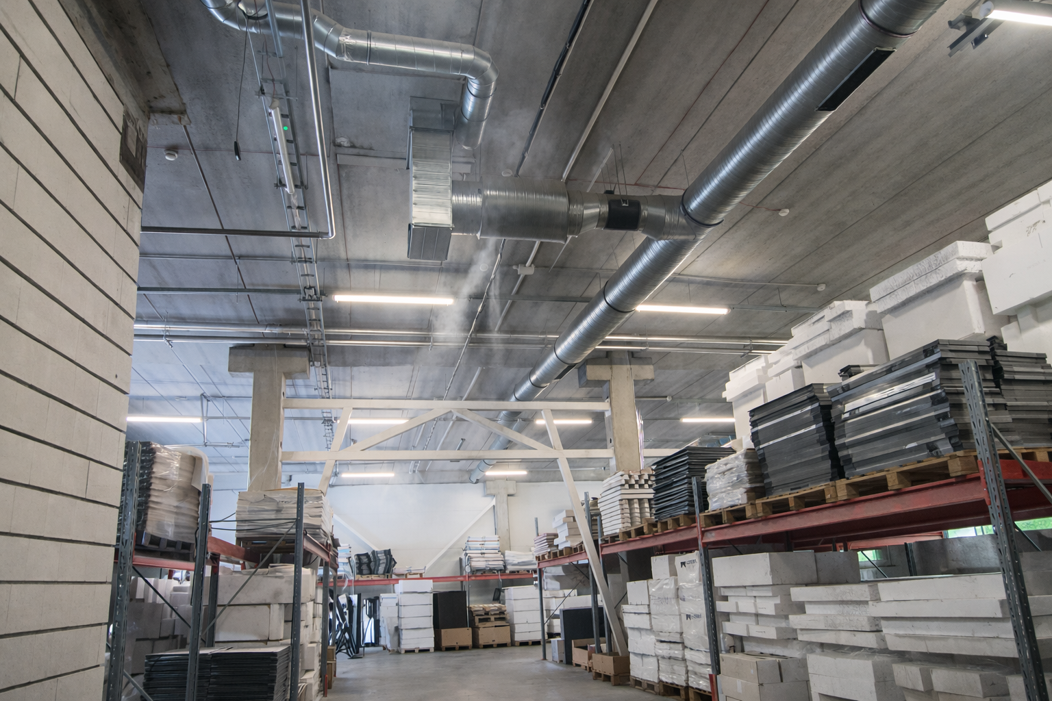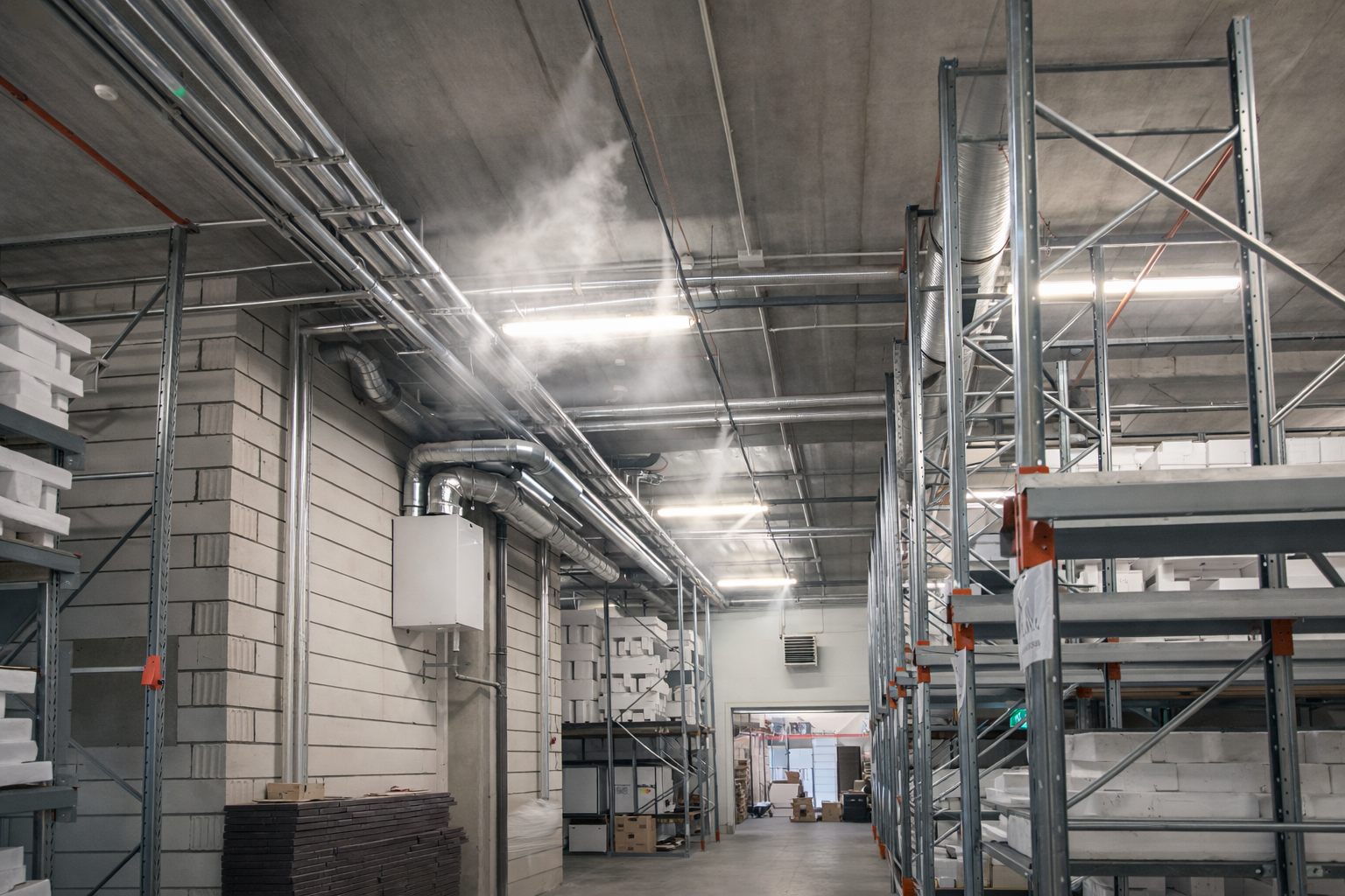 Įrengta drėkinimo sistema su Ambiente siurbliu (2 l/min našumas), drėkinanti dvi sandėliavimo zonas. Sistemoje sumontuota daugiau nei 40 MT.154SSC purkštukų, užtikrinančių tolygų drėgmės paskirstymą.