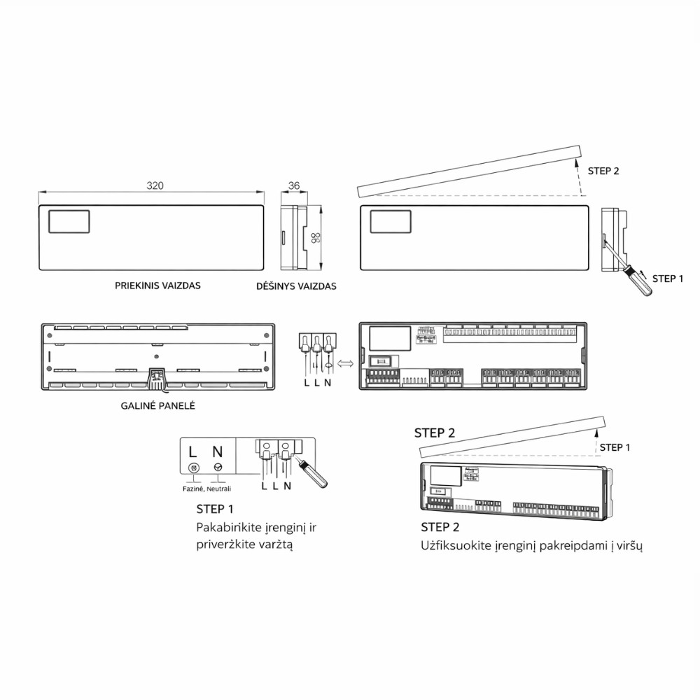 Papildomas privalumas – lankstus montavimas: valdiklis gali būti montuojamas tiek ant DIN bėgelio, tiek tiesiai ant sienos kolektorinėje spintoje, todėl lengvai pritaikomas įvairiose instaliacijose. Patogus laidų pajungimas naudojant greitas jungtis (be varžtų) leidžia ženkliai pagreitinti montavimo darbus ir sumažina klaidų tikimybę.