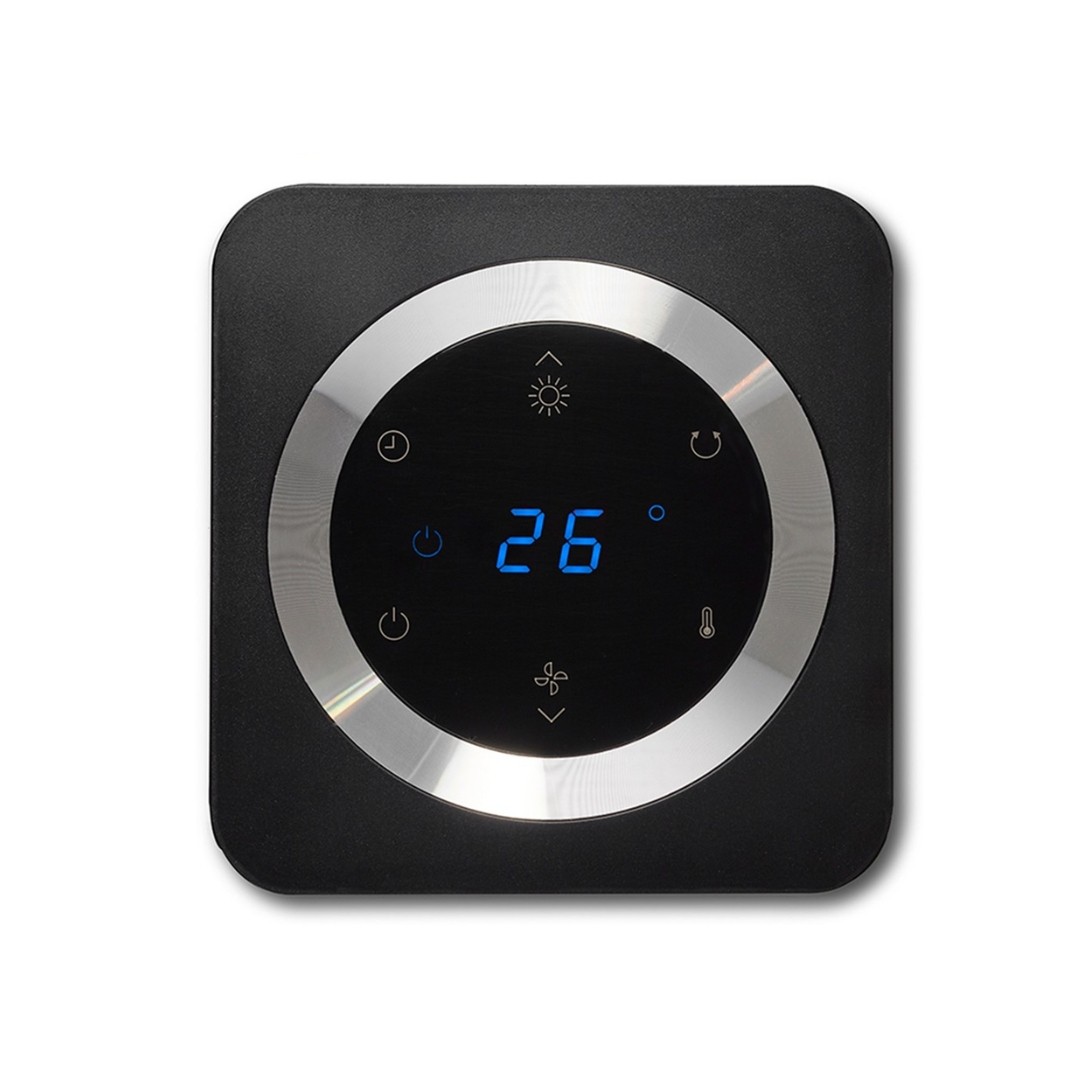 Aiškiai išdėstytame skaitmeniniame valdymo skydelyje ventiliatoriaus - šildytuvo viršuje yra šeši jutikliniai mygtukai, leidžiantys lengvai pasirinkti norimus nustatymus. Be to, šildytuvo ventiliatoriuje taip pat yra nuotolinio valdymo pultas.