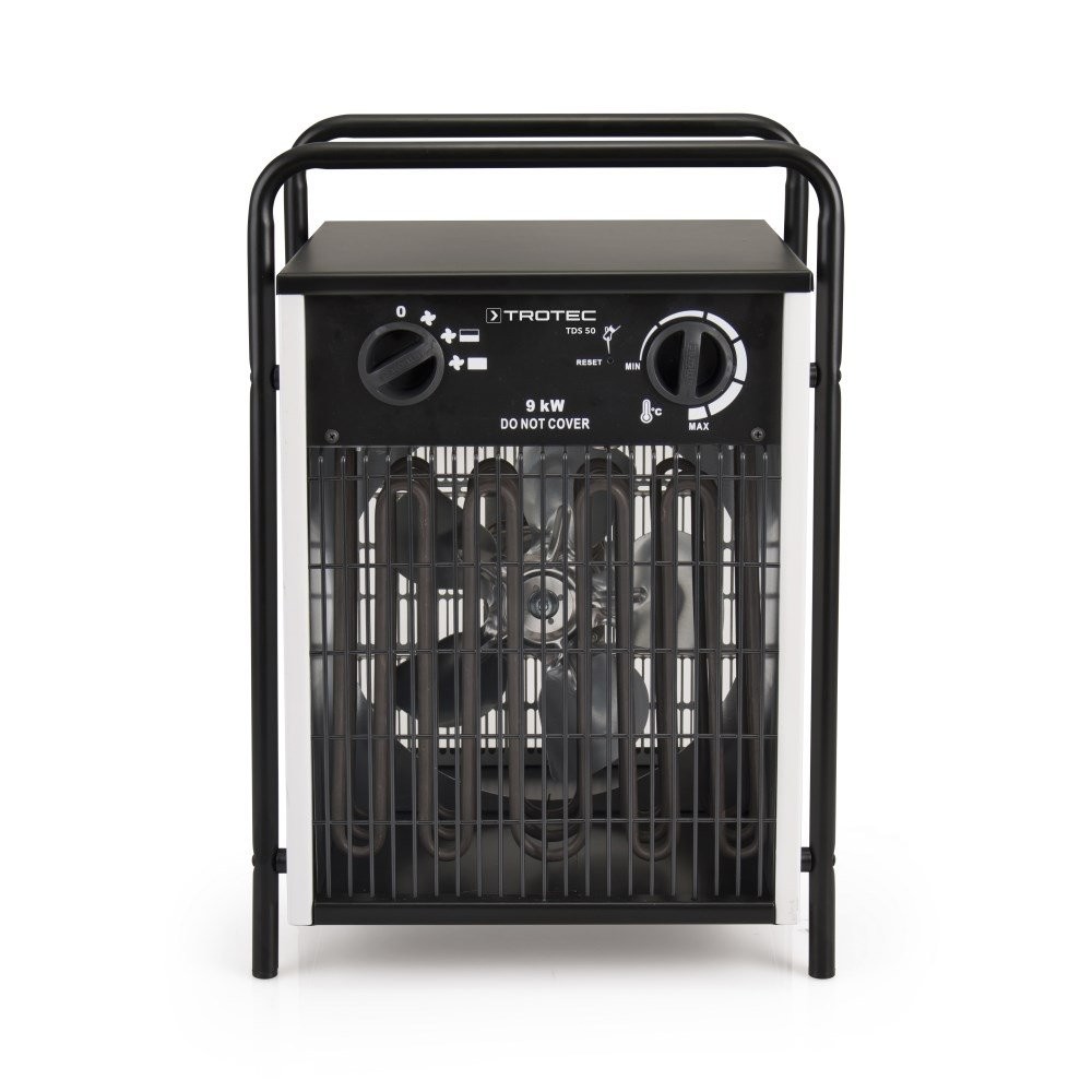 Integruoto termostato valdymo funkcijos dėka gaminamą šilto oro srautą galima nuolatos pritaikyti norimai temperatūrai visuose TDS modeliuose. TDS 10 modelyje termostato valdymo funkcijos dėka šildymo elementai įjungiami veikti kartu su nuolatiniu ventiliatoriumi tik tuomet, kai to reikia. Visi kiti TDS modeliai gali būti naudojami tik kaip ventiliatoriai be šildymo funkcijos. Jie gali išlaikyti optimalią temperatūros kontrolę, išgaunamą dėka daugiapakopės elektros kontrolės, matuojant šilumos išeigą kartu su poreikiu. Trapecijos tipo nešimo rankenos leidžia 400 V modelius uždėti vieną ant kito keliomis eilėmis, tačiau jie vis tiek išlieka stabilūs. Kaip standartinė įranga montuojamas oro slopintuvas optimizuoja šilumos išleidimą ir garantuoja maksimalų našumą. 100% Trotec, t.y. TDS serijos elektrinius šildytuvus galima įsigyti tik iš Trotec!