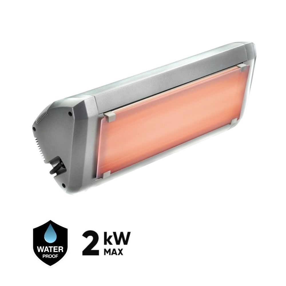 Speciali gintaro spalvos elektros lemputė sumažina net 80% šildytuvo sunaudojamų energijos sąnaudų. WATERPROOF technologija apsaugo nuo lietaus ir vandens srovės. Šildytuvas skirtas montuoti ant sienos, lubų arba mobilaus stovo.