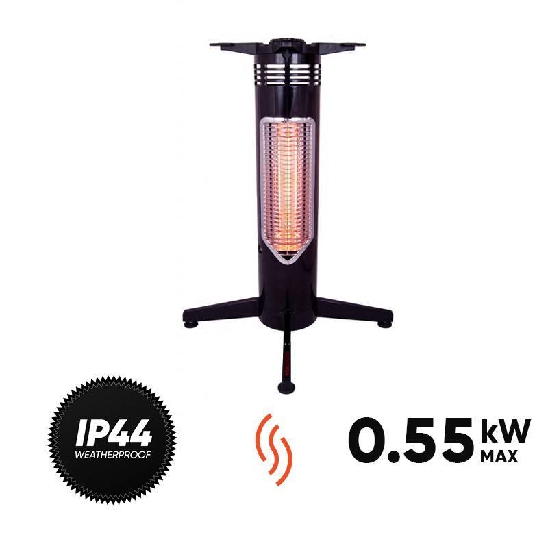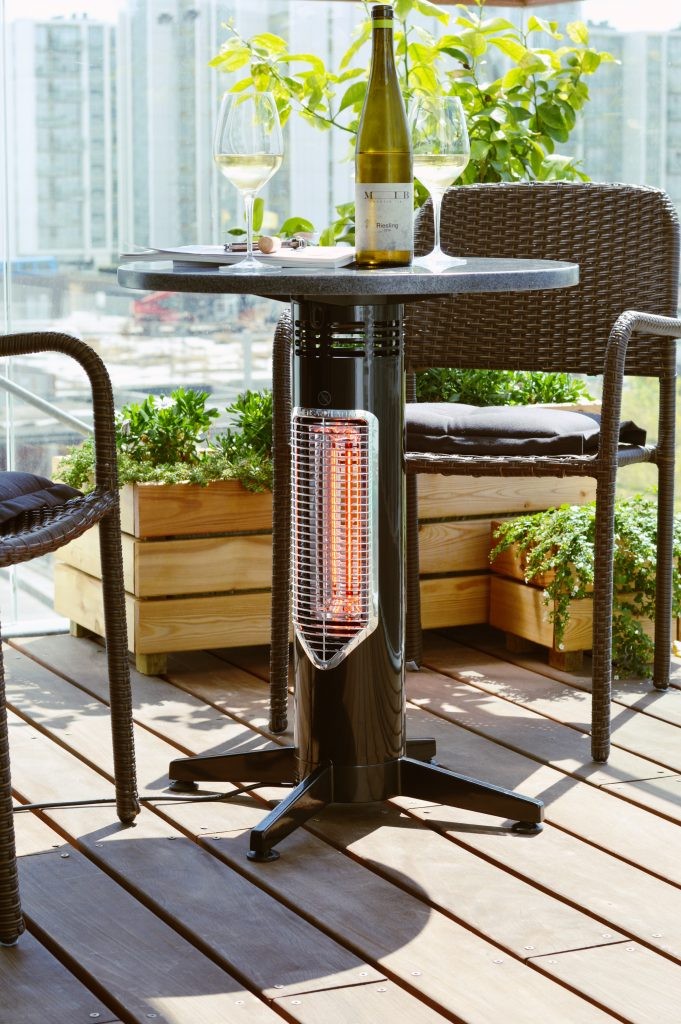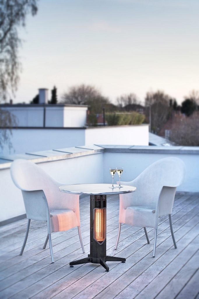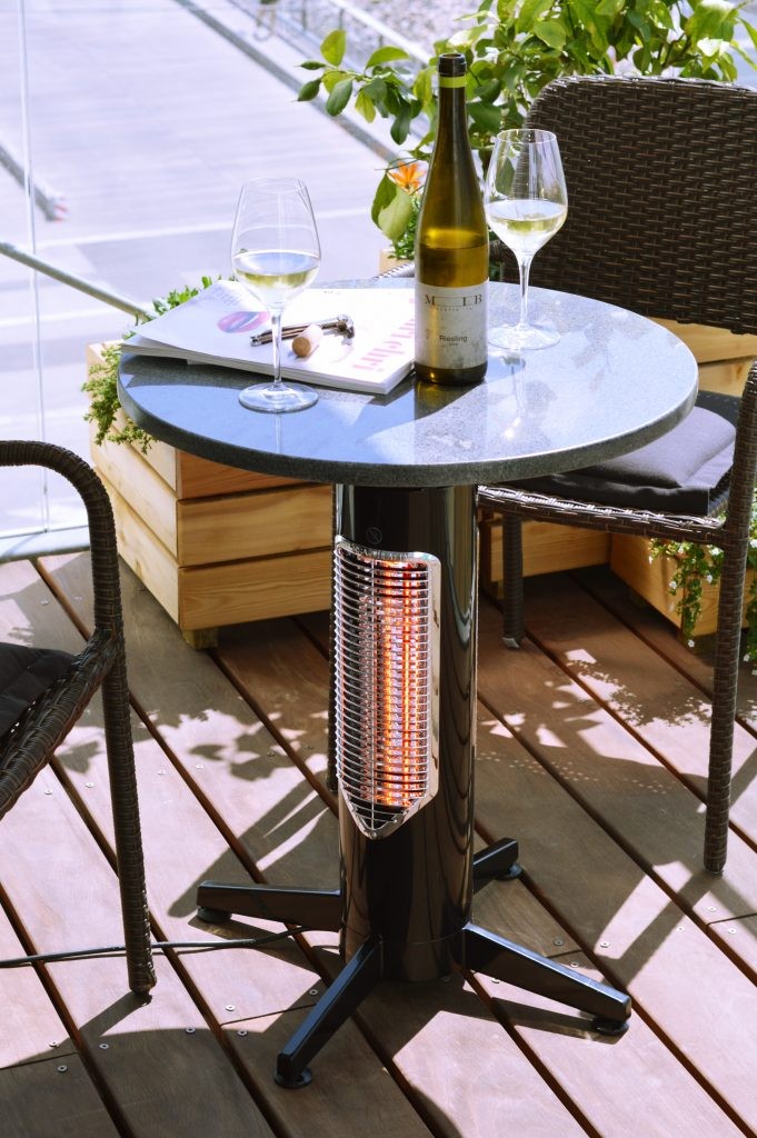 Ant VIREO šildytuvo tvirtinamas stalviršis ir yra atsparus karščiui, todėl prietaisas puikiai įsilies į bet kurio eksterjero dizainą kaip kavos staliukas ir tuo pačiu bus sutaupoma vietos terasoje, balkone ar pavėsinėje. Prietaisas skirtas šildyti du žmones, sėdinčius abiejose stalo pusėse. Tiesiog įjunkite šildytuvą ir maloni šiluma pasklis akimirksniu.