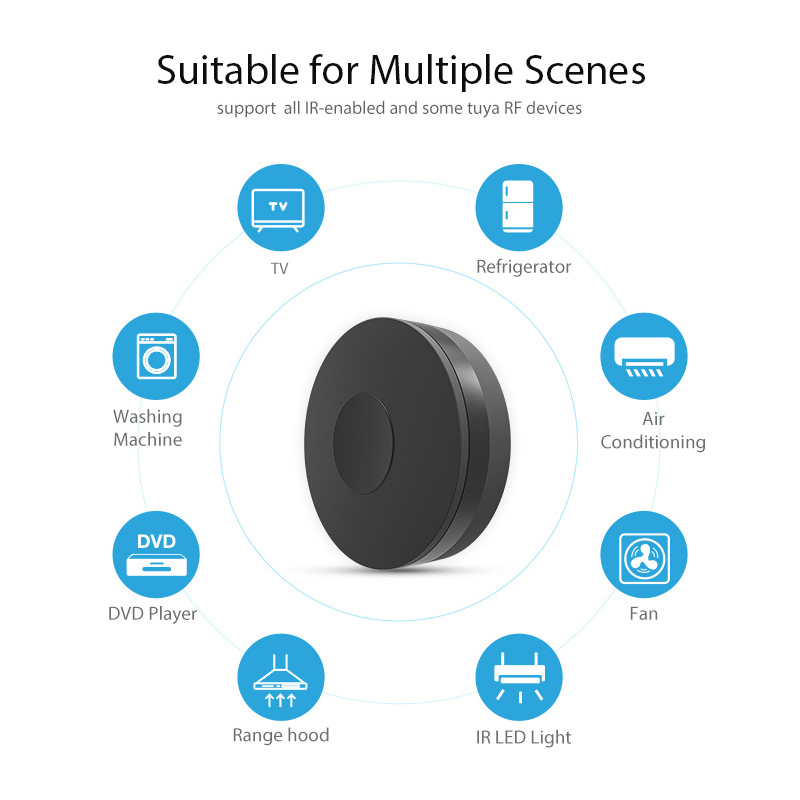 Išmaniųjų namų prietaisų valdiklis Feelspot FS-IRF02W WiFi, Tuya - tai išmanusis nuotolinio valdymo pultelis, kuris gali būti valdomas nuotoliniu būdu. Šis prietaisas pasitarnauja valdant IR/RF433/RF315 elektros prietaisus namuose ar biure naudojant mobilųjį telefoną (iOS/Android operacinės sistemos) bet kada ir bet kur. Pažangus infraraudonųjų spindulių nuotolinio valdymo pultas gali padėti valdyti televizorių, priedėlius, stereo aparatus, oro kondicionierius ir kitus prietaisus, kuriuose yra infraraudonųjų spindulių nuotolinio valdymo pulto signalai, valdomi mobiliuoju telefonu kartu.