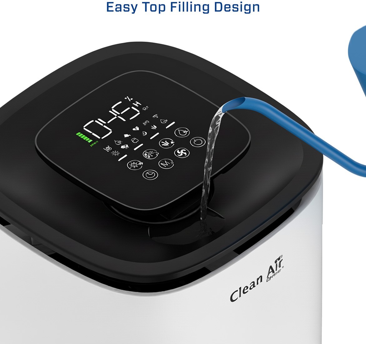 Išmanusis HEPA oro drėkintuvas – valytuvas Clean Air CA-806 Smart – tai pažangus 2in1 sprendimas, skirtas spręsti dažniausias patalpų problemas: sausą orą ir užterštą aplinką. Įrenginys vienu metu drėkina ir valo orą, todėl padeda sukurti sveikesnį ir komfortiškesnį mikroklimatą tiek namuose, tiek darbo vietoje.Šis modelis veikia natūralaus išgarinimo principu (be ultragarso), todėl nesukelia baltų dulkių ir nepalieka drėgmės žymių ant baldų. Toks drėkinimo būdas yra natūralesnis ir saugesnis, ypač jautresniems žmonėms ar šeimoms su vaikais. Integruota filtravimo sistema su TRUE HEPA H13 filtru, aktyvintosios anglies filtru ir jonizatoriumi efektyviai pašalina iki 99,97 % teršalų – dulkių, alergenų, kvapų, bakterijų ir smulkiųjų dalelių, taip užtikrindama švaresnį ir gaivesnį patalpų orą.Įrenginys pasižymi dideliu efektyvumu – oro valymo našumas (CADR) siekia 220 m³/h, o drėkinimo intensyvumas reguliuojamas nuo 250 iki 800 ml/h, todėl galima lengvai pritaikyti veikimą pagal patalpos dydį ar individualius poreikius. Tinka patalpoms iki 60 m² / 150 m³, todėl puikiai tinka tiek gyvenamosioms erdvėms, tiek biurams.Išmanusis PM2.5 jutiklis nuolat stebi oro kokybę ir automatiškai reguliuoja įrenginio veikimą realiu laiku, o integruotas higrostatas palaiko optimalų drėgmės lygį (30–80 %). Tai leidžia išvengti per sauso ar per drėgno oro, užtikrinant nuolatinį komfortą be papildomo rankinio reguliavimo.Valdymas galimas keliais būdais – per valdymo panelę, nuotolinio valdymo pultą arba Wi-Fi ryšiu per Clean Air Optima programėlęę, leidžiančią patogiai valdyti įrenginį iš bet kurios vietos.Didelė 8 litrų vandens talpa užtikrina ilgą veikimą be dažnų papildymų, o „Top Filling“ sistema leidžia paprastai ir greitai papildyti vandenį iš viršaus. Itin tylus veikimas (nuo <25 dB, Sleep režime <10 dB) leidžia įrenginį naudoti net miegamuosiuose ar vaikų kambariuose.