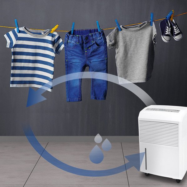 Be oro sausinimo funkcijos, oro sausintuvas Trotec TTK 90 E gali būti naudojamas skalbinių džiovinimui, net visiškai pakeičiant įprastą džiovyklę – tereikia nusistatyti norimą santykinį drėgmės lygį (46 % - tinkami dėti į spintą, 58 % - tinkami lyginti, 65 % - apysausiai). Oro sausintuvas – drėgmės surinkėjas Trotec TTK 90 E turi integruotas visos komforto klasės funkcijos: laikmatį, dviejų lygių ventiliatorių, apsaugą nuo išsiliejimo bei automatinio išjungimo funkciją ir lengvai išimamą ir plaunamą oro filtrą. Nuolatiniam sausinimui integruota drenažo jungtis, leidžianti prietaisui neprižiūrimai ir nepertraukiamai veikti bei turėti mažesnes energijos sąnaudas.