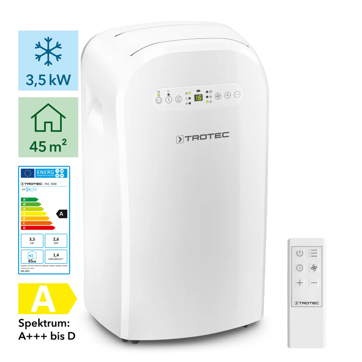 Dėl 3,5 kW vėsinimo galios, automatinio temperatūros reguliavimo skaitmeniniu termostatu ir energinio efektyvumo A klasės patalpų oro kondicionierius PAC 3500 idealiai tinka ekonomiškam dirbtuvių, viešbučių kambarių, biurų ir daugelio kitų patalpų oro kondicionavimui.