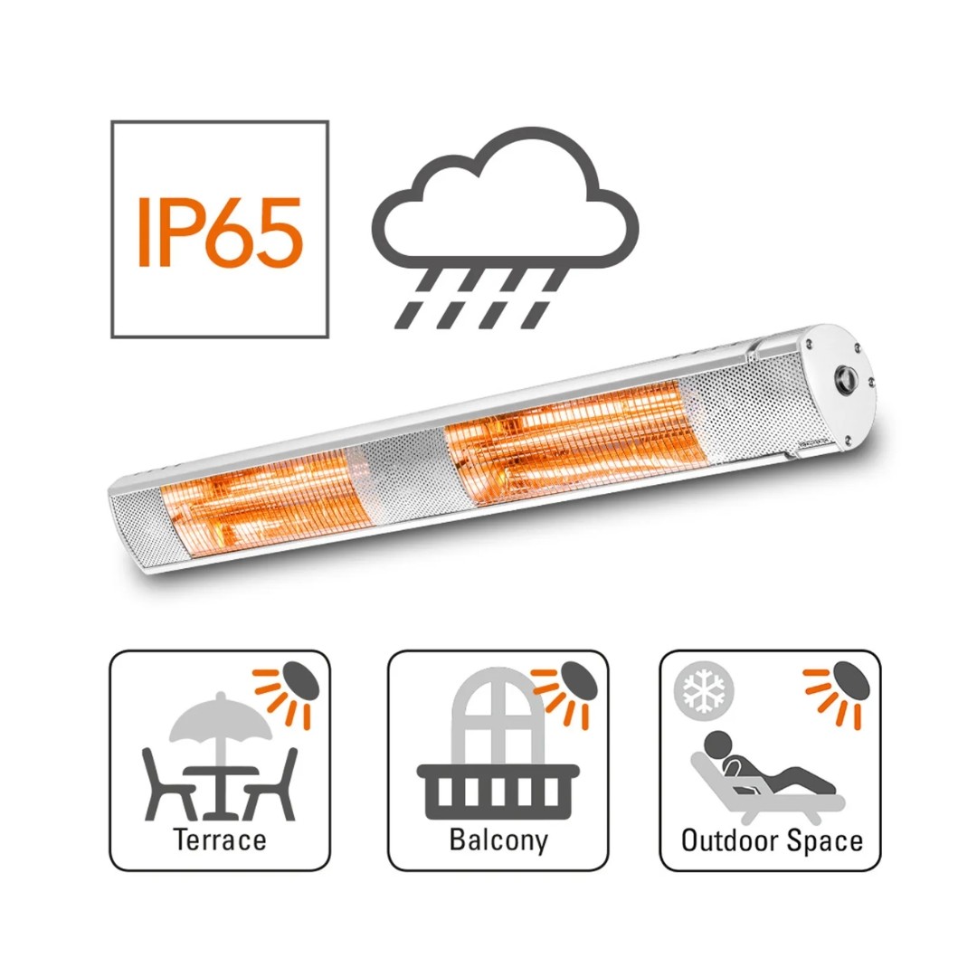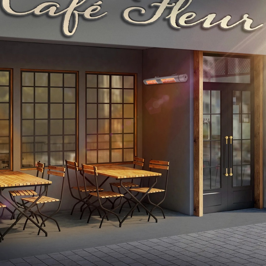 Moderni Low Glare technologija sumažina matomos raudonos šviesos kiekį iki 80 %, išlaikant 100 % šildymo efektyvumą. Tai reiškia, kad terasa ar lauko erdvė išlieka jauki ir neperkrauta ryškia oranžine šviesa – idealu restoranams, kavinėms ar namų vakarienėms lauke.