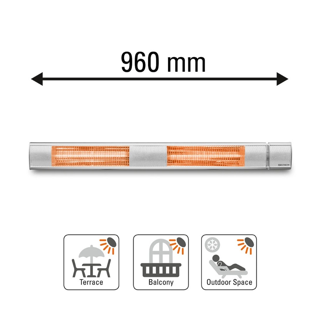 Šis infraraudonųjų spindulių šildytuvas veikia visiškai tyliai, neskleidžia kvapų, nekondensuoja drėgmės ir nekelia dulkių – todėl tinka net jautresniems naudotojams ar komercinėms erdvėms.