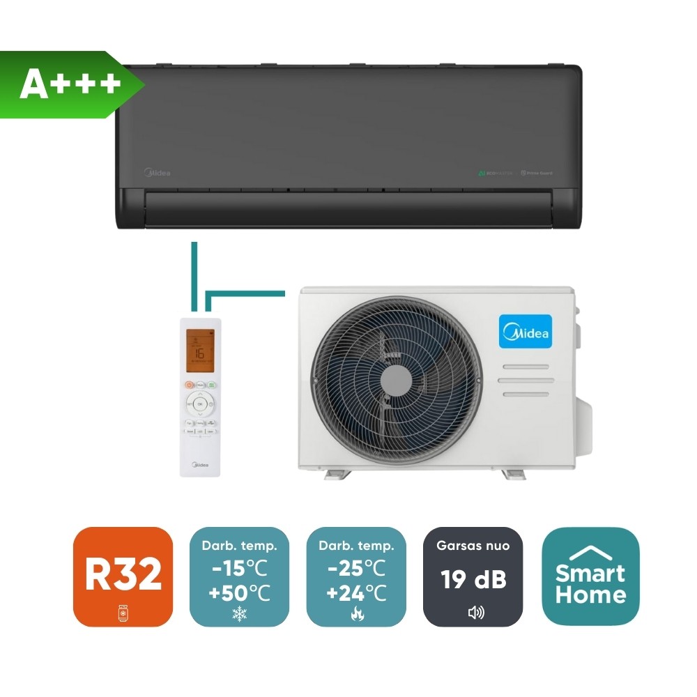 Split oro kondicionierius (oras–oras šilumos siurblys) Midea EZ (komplektas), antracito