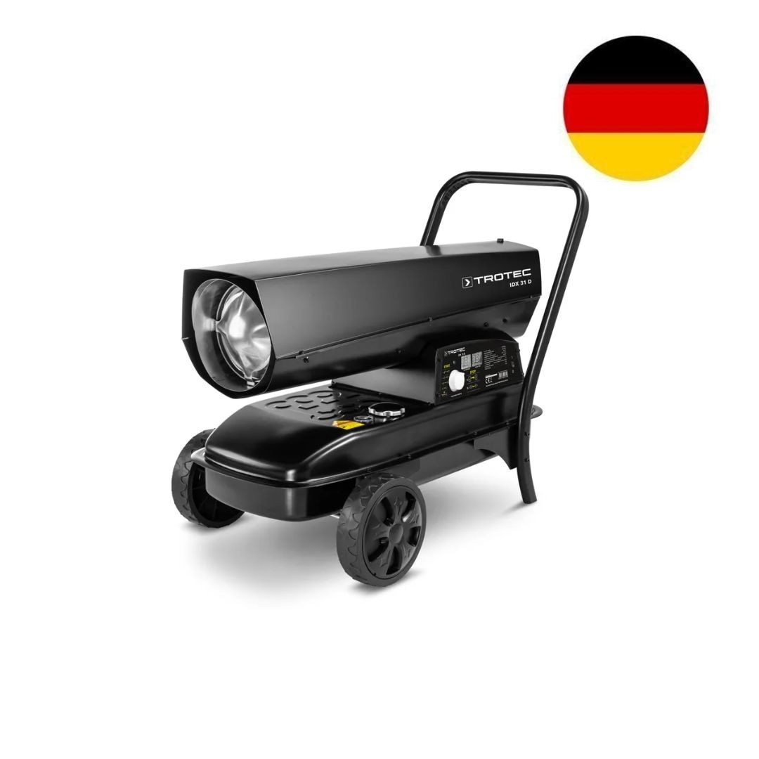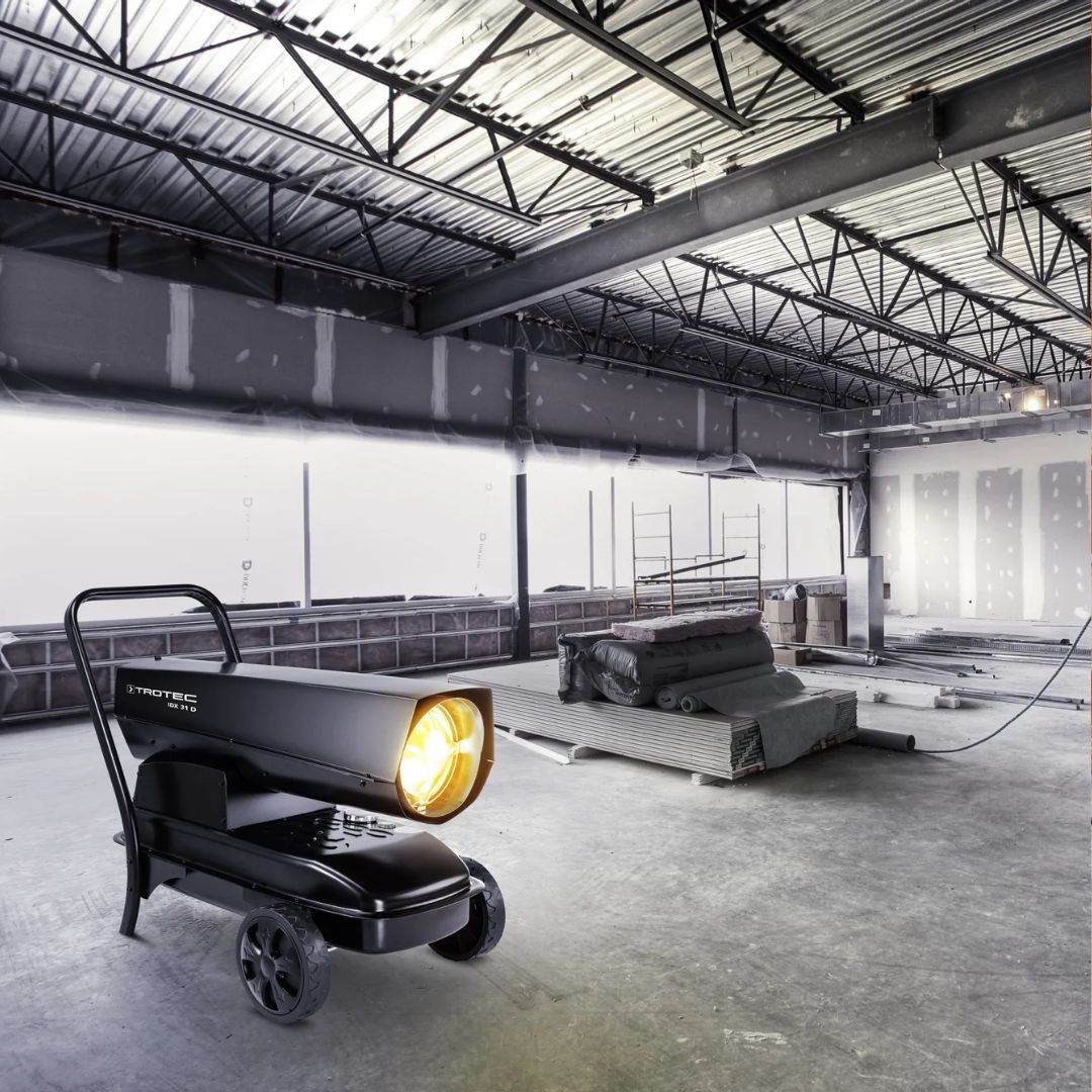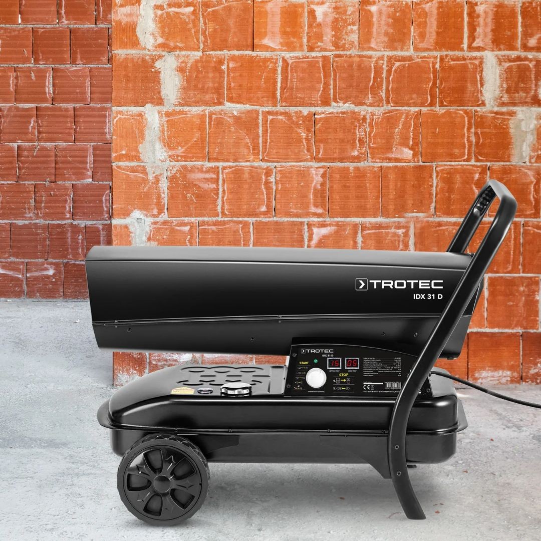 Trotec IDX 31 D – tai patikimas ir galingas tiesioginio degimo dyzelinis šildytuvas, sukurtas darbui sudėtingomis sąlygomis. Jis idealiai tinka statybų aikštelėse, gamybos cechuose, ūkiuose, sandėliuose ar dirbtuvėse, kur būtina greitai ir efektyviai šildyti didesnius plotus.